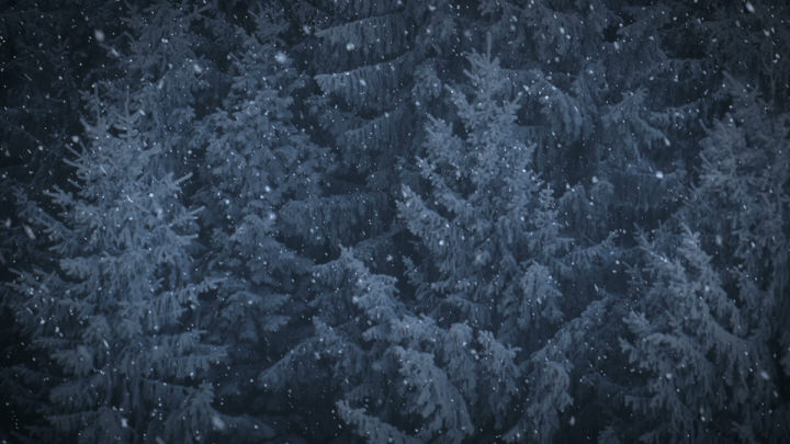 HD video background loop of a lone hipster strolling through a snowy winter forest.